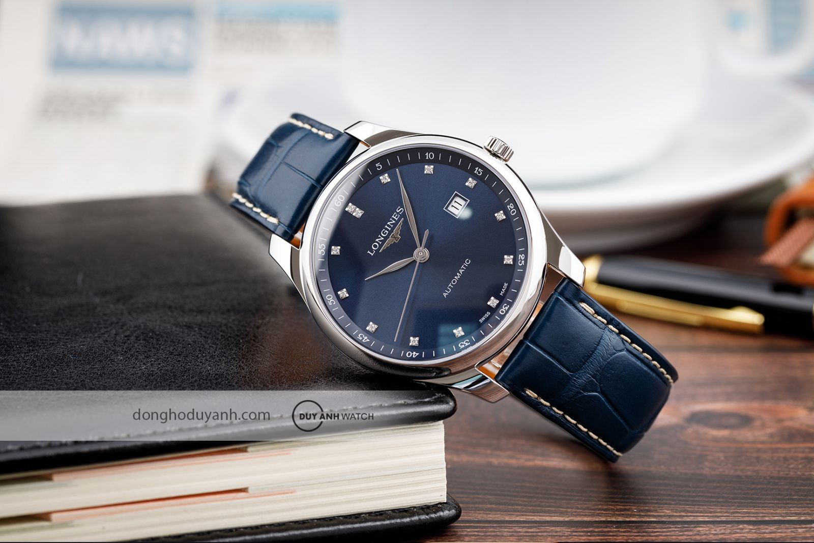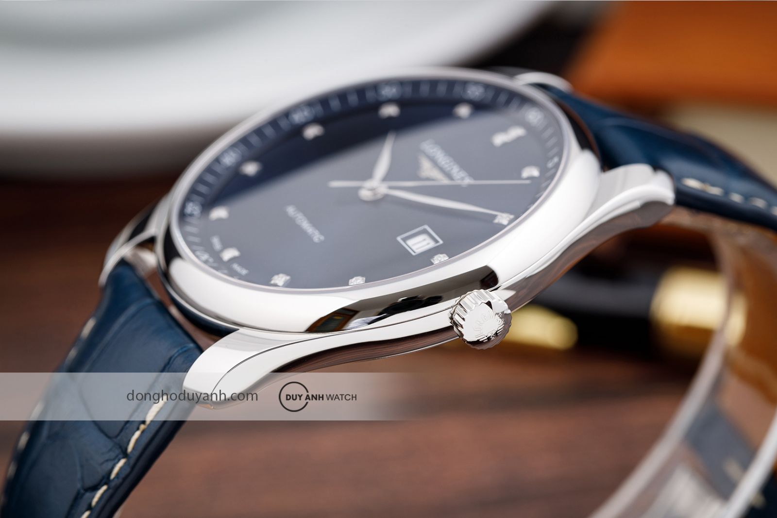 Bố cục hài hòa, dễ quan sát: Logo Longines cùng biểu tượng cánh chim được đặt tại vị trí 12 giờ. Dòng chữ Automatic nằm gọn gàng phía trên vị trí 6 giờ. Ô lịch ngày được bố trí tại góc 3 giờ, thiết kế vuông vức, dễ đọc và rất tiện dụng trong sinh hoạt hằng ngày.