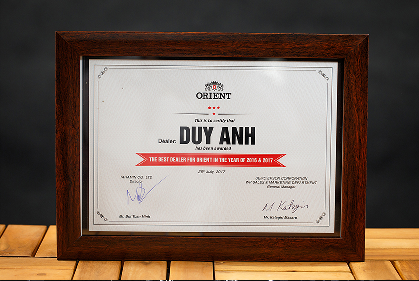 Chứng nhận Duy Anh Watch là Đại lý ủy quyền chính thức thương hiệu CANDINO, ORIENT tại Việt Nam