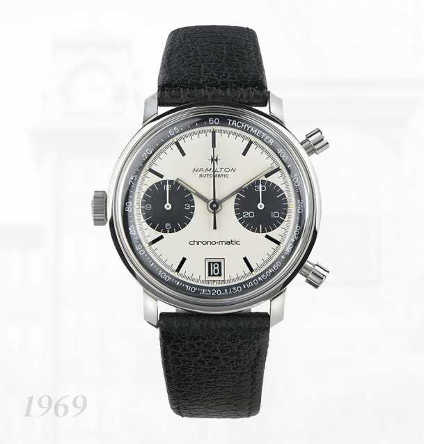Năm 1969, Hamilton đóng vai trò then chốt trong việc phát minh ra Caliber 11, bộ máy bấm giờ tự động đầu tiên và là một trong những đột phá lớn nhất trong lịch sử chế tạo đồng hồ. Chrono-Matic A là ví dụ ban đầu về đồng hồ bấm giờ tự động thể thao với bộ máy Caliber 11
