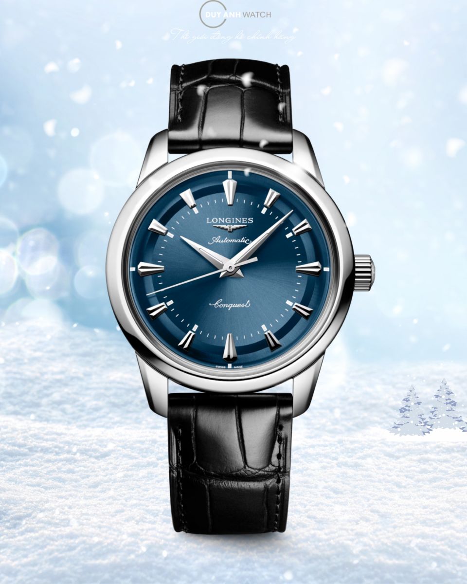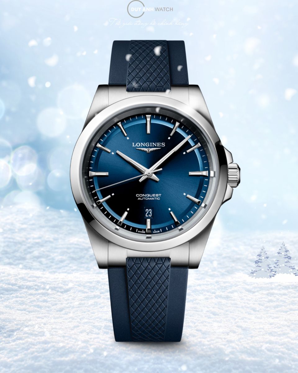 Longines Conquest L3.830.4.92.9 là mẫu đồng hồ lý tưởng cho mùa đông với vẻ vừa thể thao vừa tinh tế. Vỏ thép 41 mm chắc chắn, kết hợp với dây cao su xanh và mặt số sunray xanh dương tạo cảm giác năng động nhưng vẫn thanh lịch. Máy tự động Longines calibre L888 dùng lò xo silicon, trữ cót đến 72 giờ, đảm bảo hoạt động bền bỉ. Đồng hồ còn có khả năng chống nước đến 10 bar (100 m), kính sapphire chống xước và lớp chống phản chiếu, rất phù hợp để sử dụng trong nhiều hoàn cảnh mùa lạnh.