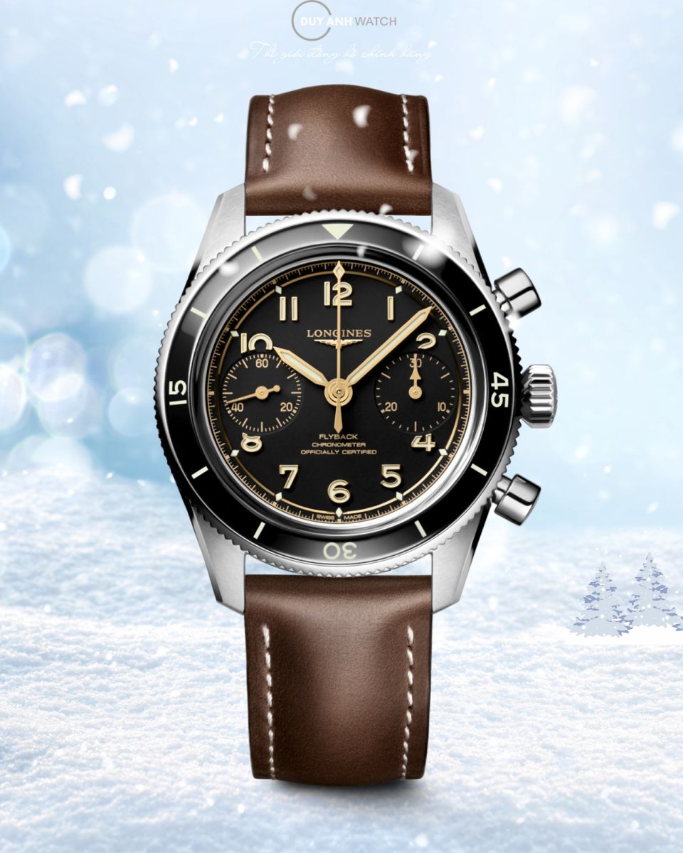 Longines Spirit Pilot Flyback L3.721.4.53.2 là mẫu đồng hồ trend mùa đông với thiết kế phi công cổ điển nhưng hiện đại. Vỏ thép 39,5 mm, mặt số đen matt cùng kim‑cọc phủ Super‑LumiNova giúp đọc giờ rõ ràng. Điểm nhấn là chức năng chronograph flyback tiện lợi và bộ máy calibre L792 dự trữ 68 giờ, được chứng nhận COSC. Kính sapphire chống trầy, chống nước 100 m và đáy lộ máy tạo vẻ sang trọng, mạnh mẽ. Đây là chiếc đồng hồ lý tưởng để vừa nổi bật phong cách, vừa linh hoạt trong mọi hoạt động mùa đông.