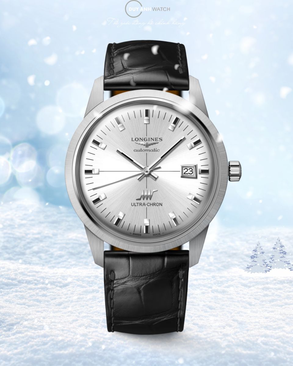 Một lựa chọn rất tinh tế cho mùa đông năm nay là Longines Ultra‑Chron Classic L2.937.4.72.2. Chiếc đồng hồ này sở hữu bộ máy tần số cao (36.000 vph) với lò xo cân bằng silicon, đem lại độ chính xác vượt trội. Thiết kế hoài cổ lấy cảm hứng từ Ultra‑Chron những năm 60, với mặt số sunray bạc sang trọng, cọc số và kim bóng.