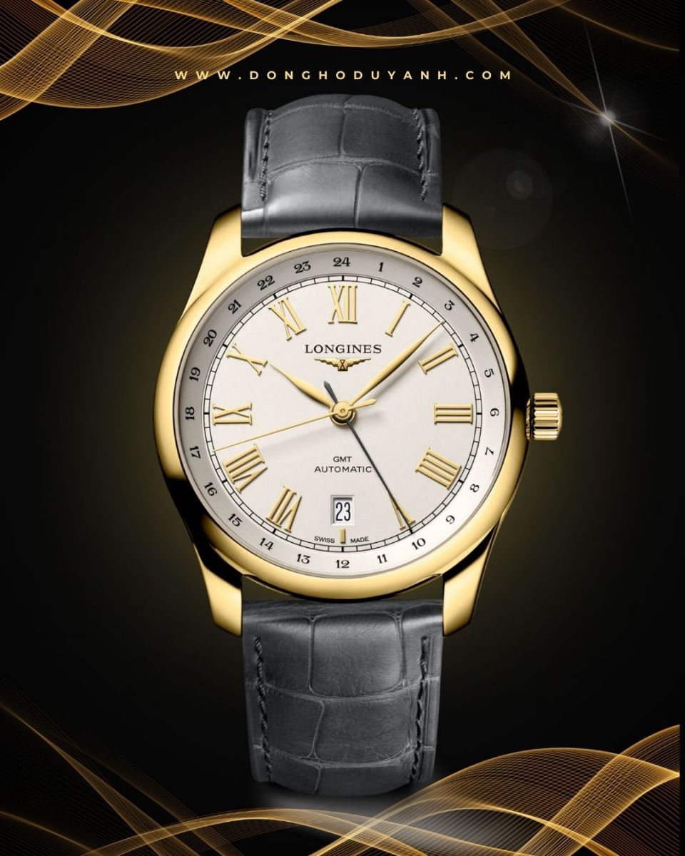 Bộ sưu tập Longines Master Collection GMT được giới thiệu với hai mẫu, đó là phiên bản vàng vàng L2.844.6.71.2 như mẫu dưới đây và phiên bản vàng hồng L2.844.8.71.2 ở trên. Cả hai chiếc đồng hồ đều được trang bị tính năng GMT.