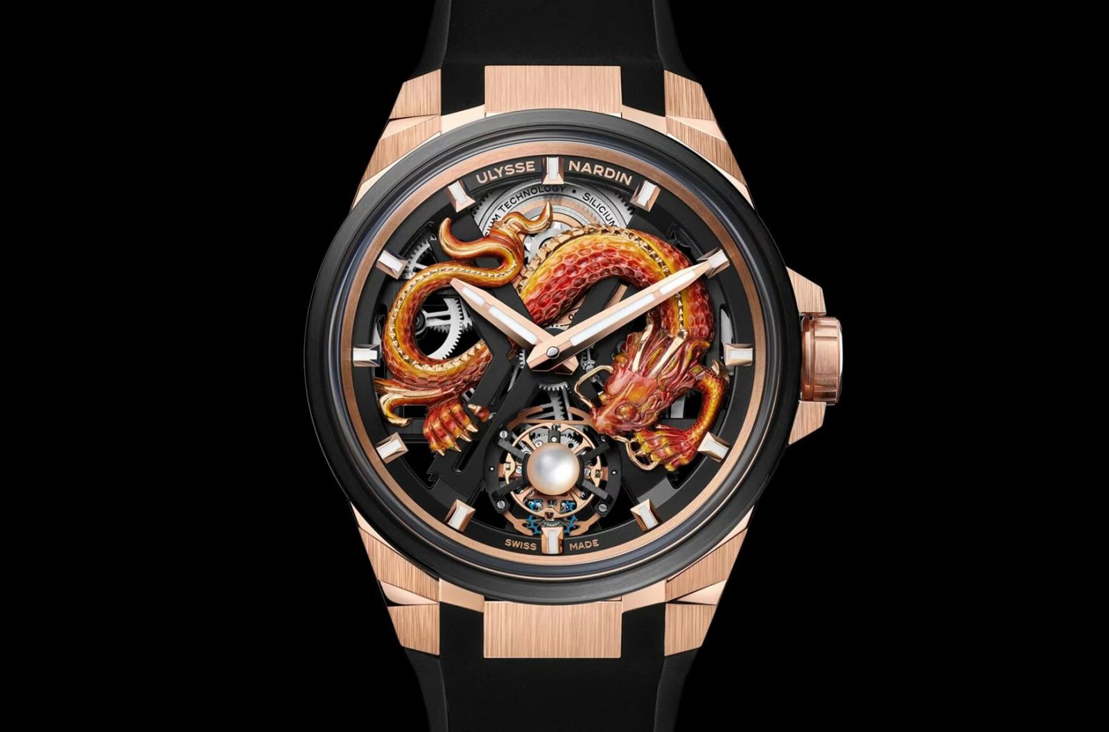 Blast Tourbillon được giới thiệu vào năm 2020, có thể đón nhận bất kỳ cơ hội nào và Tết Nguyên đán cũng không ngoại lệ. Để đánh dấu sự kiện này, Ulysse Nardin cho ra mắt đồng hồ năm con rồng nêu bật các kỹ năng của nhóm métiers d'art của mình bằng việc tạo ra một con rồng bay lượn trên cấu trúc hình chữ X của mặt số.