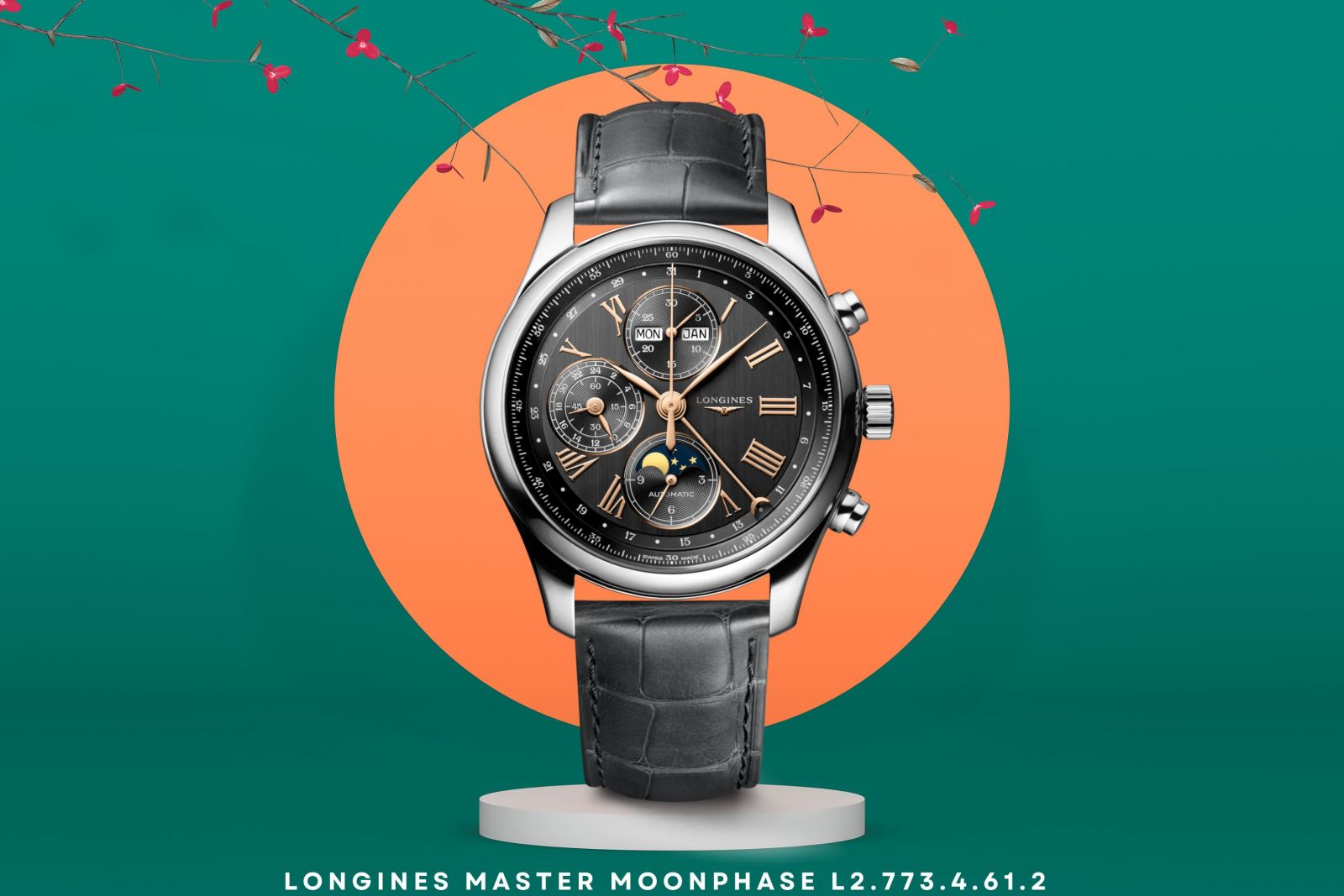 Với thiết kế đẳng cấp và chất lượng hoàn hảo, đồng hồ Moonphase giúp người đeo tự tin hơn trong mọi hoàn cảnh. Mỗi khi nhìn xuống cổ tay, bạn sẽ cảm nhận được sự sang trọng và đẳng cấp, từ đó giúp bạn tự tin hơn trong giao tiếp và cuộc sống. Longines Master Chronograph Moonphase L2.773.4.61.2 là chiếc đồng hồ thực sự ấn tượng, không chỉ có tính năng moonphase mà nó còn là chiếc đồng hồ bấm giờ chính xác với bộ máy cơ Caliber L687, 28.800vph, trữ cót 66h từ Thụy Sĩ.