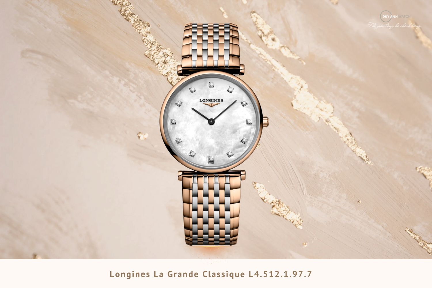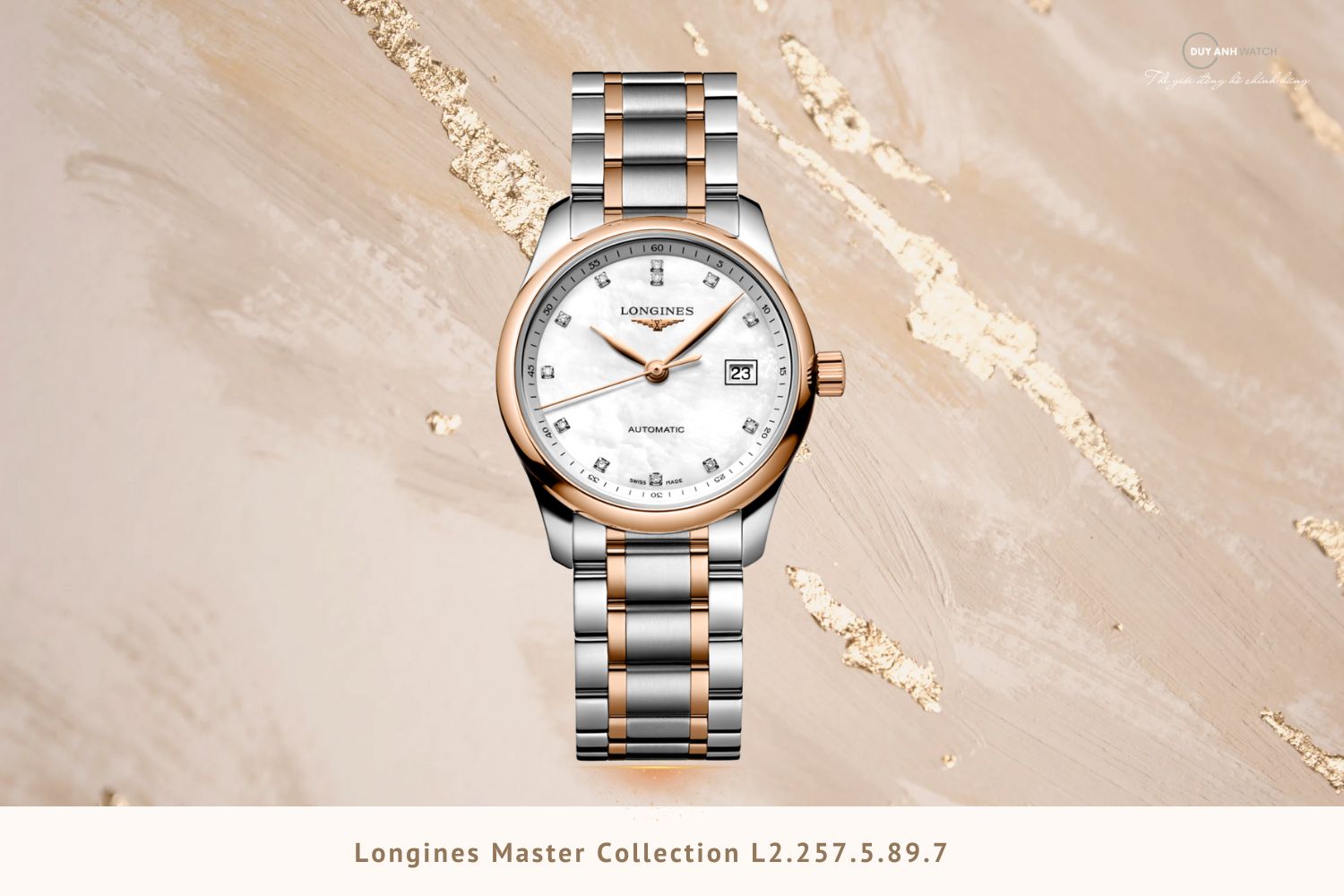 Thêm một mẫu đồng hồ thuộc BST Longines Master Collection, mẫu hai tone màu bạc và vàng hồng với mặt số xà cừ và cọc số đinh kim cương này xứng đáng là mẫu đồng hồ hoàn hảo cho người phụ nữ yêu thích vẻ đẹp sang trọng.