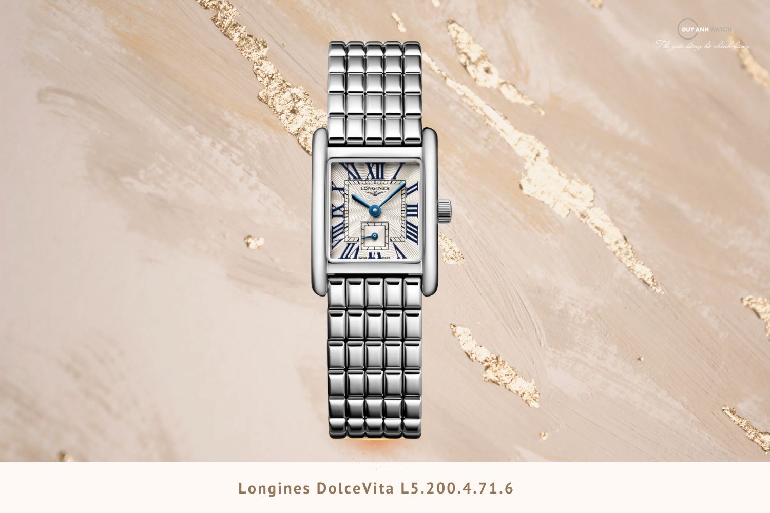 Longines DolceVita L5.200.4.71.6 là chiếc đồng hồ nữ thể hiện phong cách Longines cổ điển với một chút cảm hứng từ Art Deco. Vỏ hình chữ nhật là đặc điểm nổi bật của bộ sưu tập DolceVita và giúp nó khác biệt so với những chiếc đồng hồ tròn truyền thống hơn. Nó mang đến cho chiếc đồng hồ vẻ độc đáo và thanh lịch lấy cảm hứng từ phong cách Art Deco.