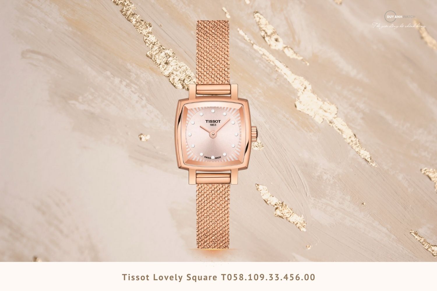 Tissot Lovely Square T058.109.33.456.00 là chiếc đồng hồ nữ đẹp và thanh lịch, toát lên phong cách cổ điển và tinh tế. Thiết kế vỏ vuông của nó khiến nó khác biệt so với những chiếc đồng hồ tròn truyền thống hơn, mang đến vẻ ngoài độc đáo và đương đại. Đây là sự thay đổi so với vỏ đồng hồ tròn thông thường, trở thành lựa chọn phong cách cho những ai muốn có chút gì đó khác biệt.
